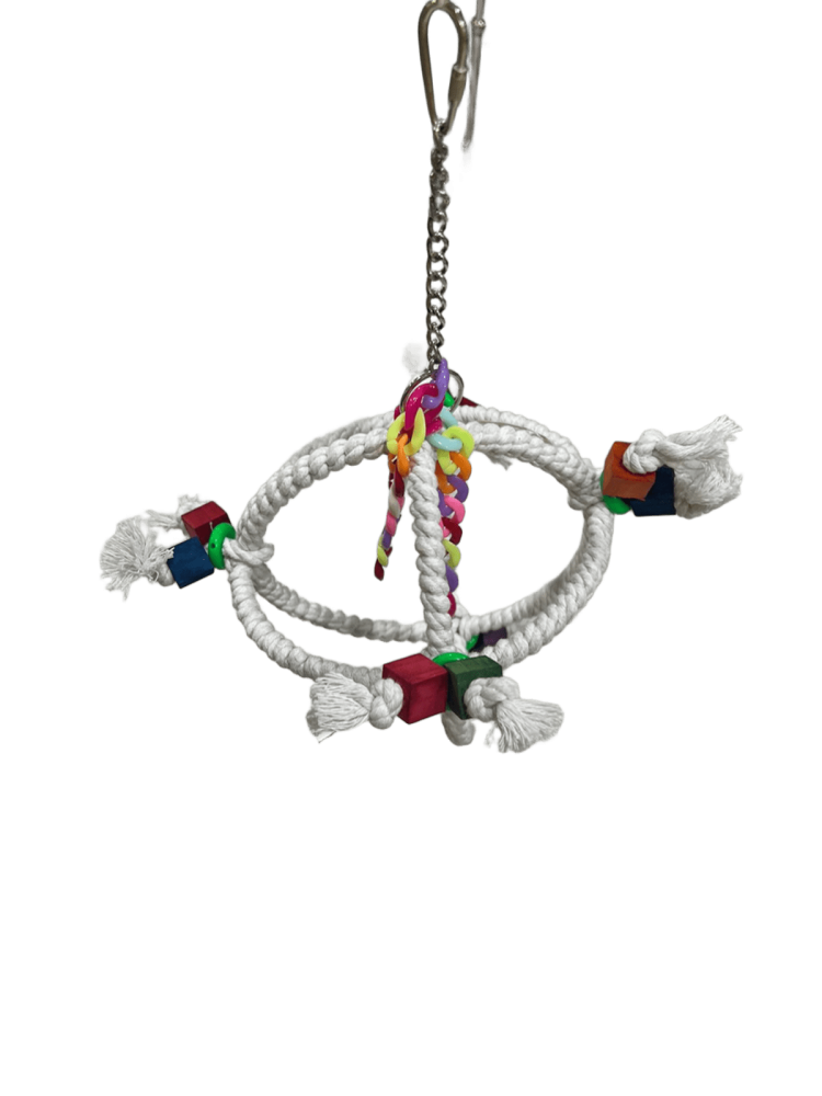 - مكونة من الخشب والخيوط القوية وتحتوي على أداة للتعليق بالقفص .